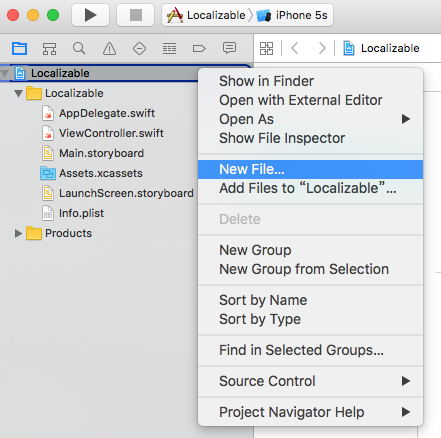 13. at "Localizable.strings(Base)" input "test='TEST';"